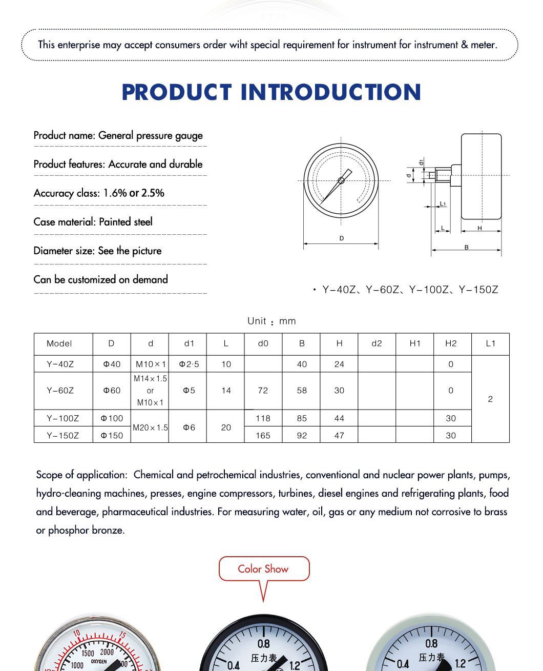 | مقياس قياسي | MPa ، Kg / cm2 ، psi / kPa ، بار ... حسب الطلب |