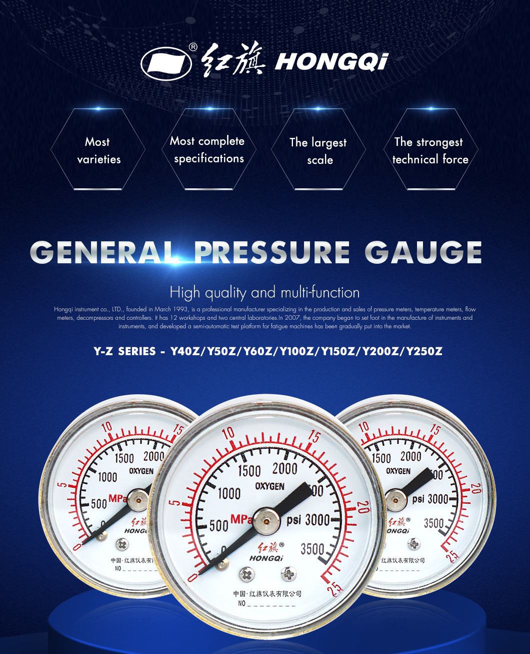 Hongqi Instrument Co. ، Ltd هي شركة محترفة لتصنيع جميع أنواع أدوات المقاييس عالية الجودة. تشمل خطوط منتجاتنا الرئيسية المقياس الجاف ، ومقياس الضغط المملوء بالسائل ، ومقياس الضغط الخاص ، ومقياس الكبسولة ، ومقياس الضغط المملوء بالسائل الفولاذي المقاوم للصدأ ، ومقياس الحرارة ، والملحقات. . تتمثل رؤيتنا واستراتيجيتنا في أن نصبح الشركة الرائدة في تصنيع الأجهزة الصناعية لقياس الضغط وقياس درجة الحرارة. سنكون متميزين عن المنافسين من خلال تقديم خط إنتاج متنوع وعالي الجودة وخدمة عملاء متفوقة وشبكة توزيع عالمية ...